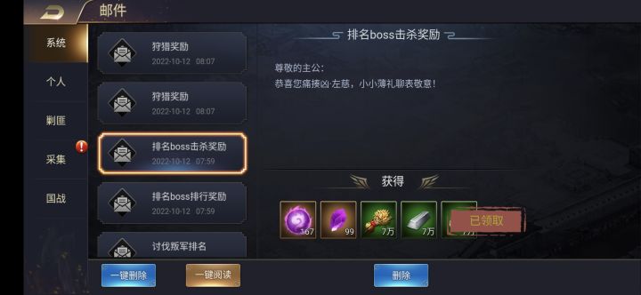 【签到】192-周德天 2022.10.12签到给新人建议是BOSS要打最后一下奖励才多