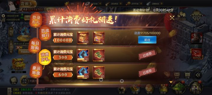 253刘皇叔2023.2.28签到打卡百战活动,要中元宝就得抽元宝,我说的对么?抽多点概率高!