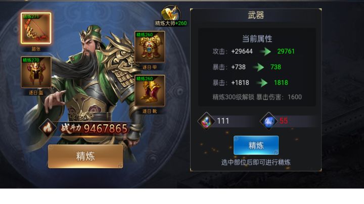 138服东京 热嘻哈,武将装备精炼等级200和300时能大幅度提升战力
