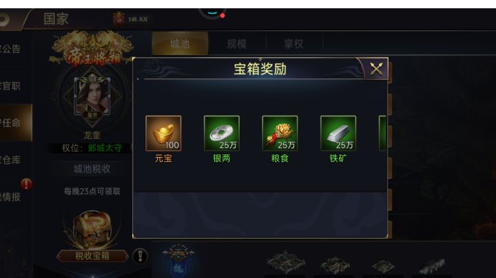 完成160次民情,额外奖励100元宝。