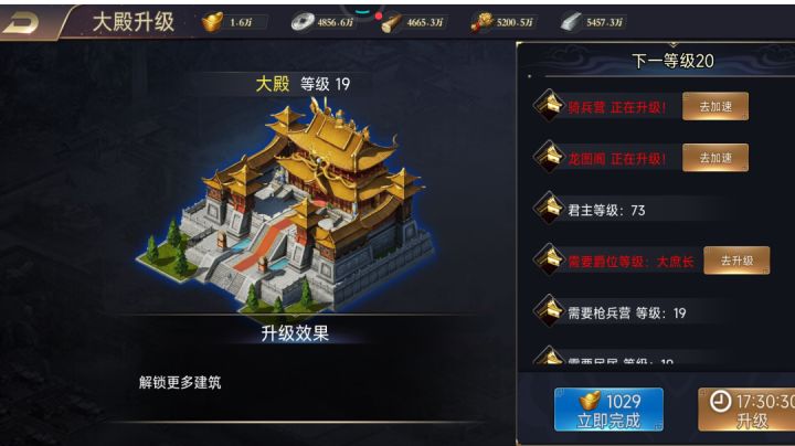 20级大殿升级条件
