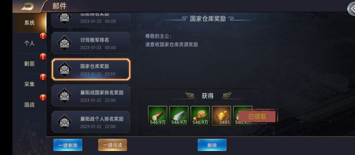 132 笑傲江湖2023.01.25签到打卡国家仓库每周可以分一次元。充值分的更多喔。
