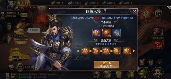 132 笑傲江湖2023.01.06签到打卡敌将入侵随着爵位的升级每天打的次数也会增加。