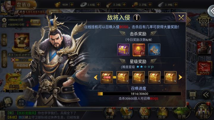 e敌将入侵好像是随等级提升而变化吧