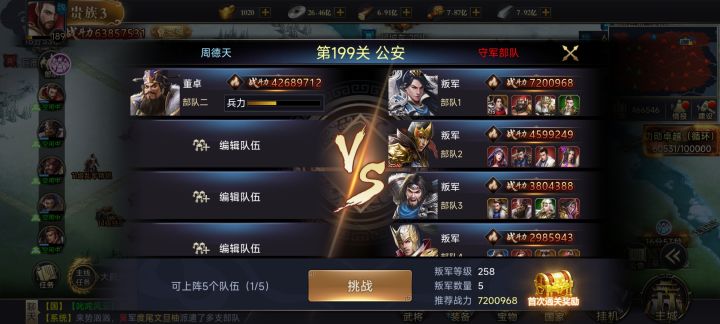 讨伐叛军在大家战力上来以后尽量用一队去打,上的队伍数量越多耗兵越多,这样划不来。