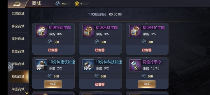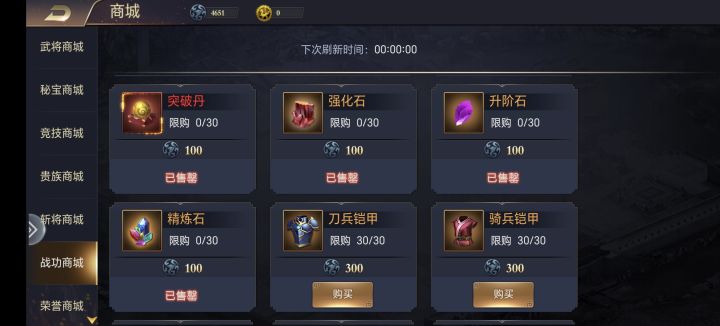 在前期攻城艰难时,战功商城选择性地买。主要买突破石、强化石、升阶石、精炼石和资源宝箱。