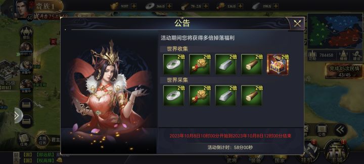 上午10:00~12:00,采集资源、收集宝箱奖励翻倍,尽量别错过。