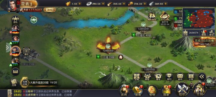 众所周知襄阳战一直以来都备受争议,作为游戏中最具玩法的活动,也存在着不少弊端列举一下有哪些好的地方首先,襄阳战人越多越容易胜利,一些比较弱势,而玩家比较多的国家可以利用一个将或者低战(不超过守城部队的战力)去攻打别国的门,可以延长他们的攻城时间这里说下如何延长,游戏中战斗界面最长时间为俩分钟,你用高战去打打一支部队大概20秒,但是你用低于守城部队的队伍去打,会打上一分多钟,甚至打不过(未击杀