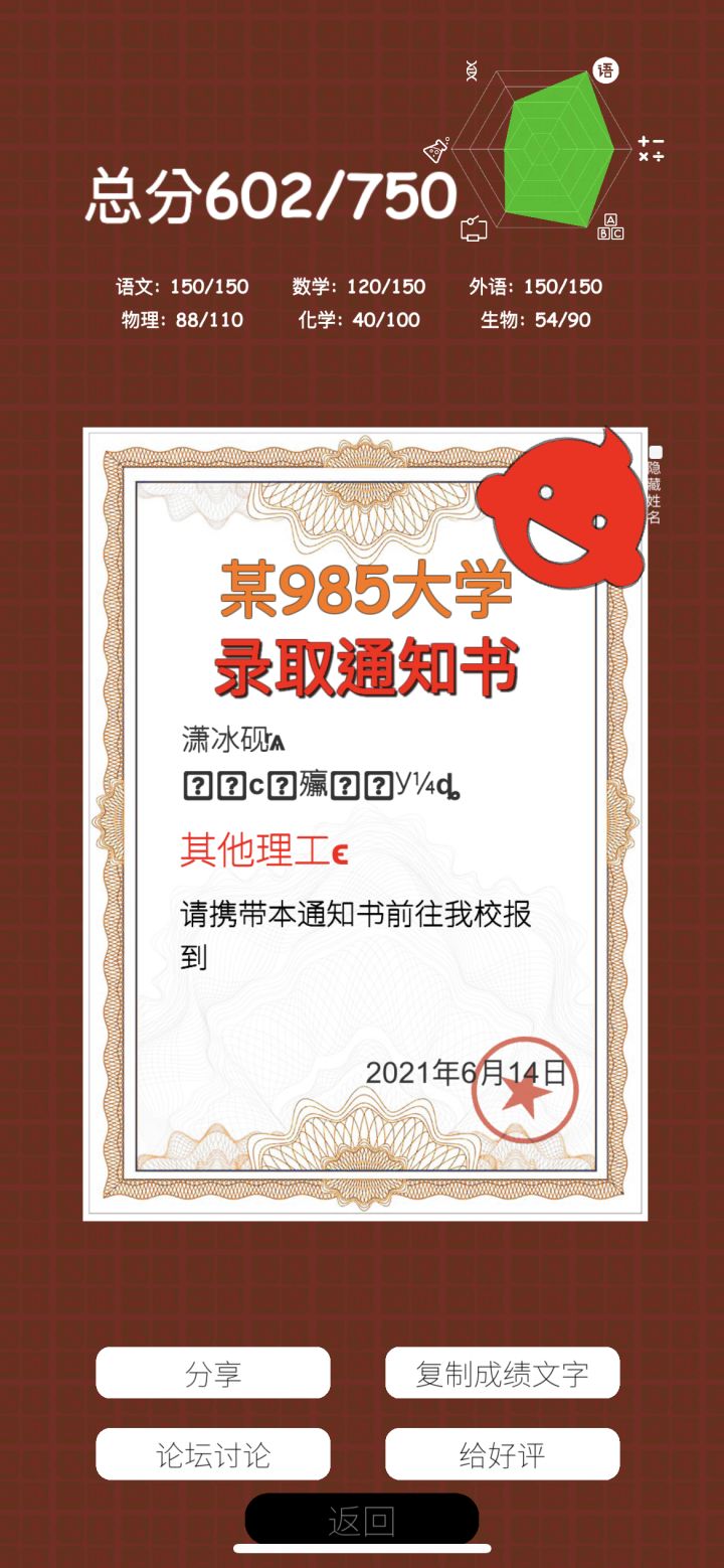希望我高考的时候分数和这个一样🙏