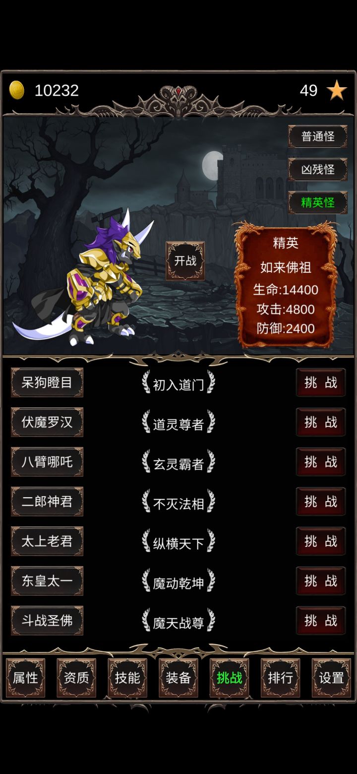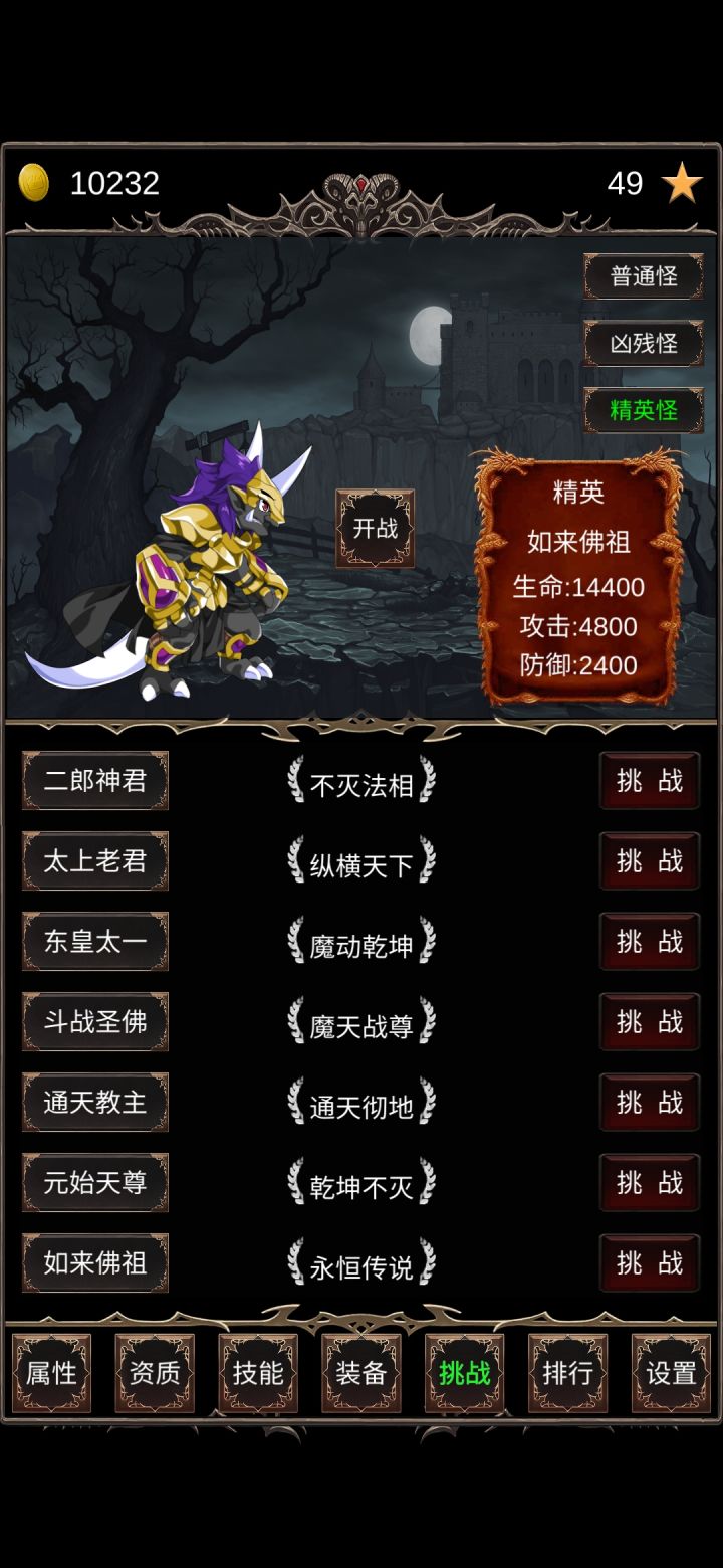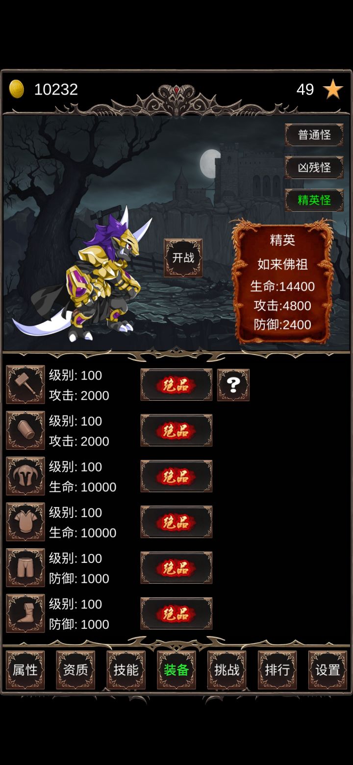 毕业留念,通关时间大概一个小时。第一次完了半个小时发现玩错了,卸载重装。进游戏可以打怪,但别升到2级,看点广告刷装备品质,用金币升几级,只要能打过1级精英就行。然后就是无脑挂机了,先升攻击秒怪,然后把连击升满,升级效率最大化。期间不要换怪不要挑战,怪物的属性就不会增长,刷到一百级,所有资质刷满,挑战boss通关。