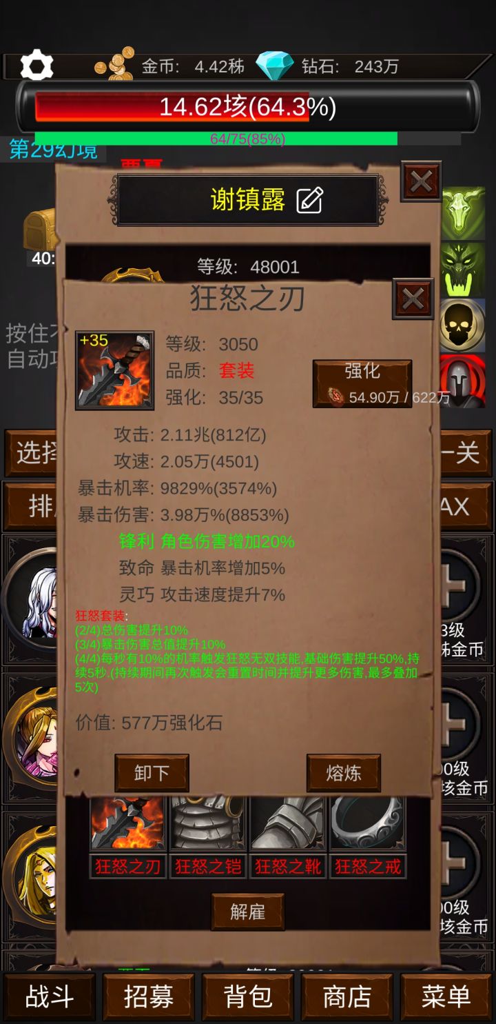 所以后期推图能否过就看四废中减暴击减速能否同时出现。