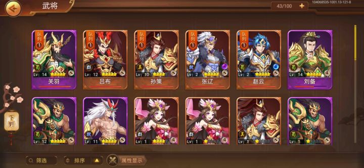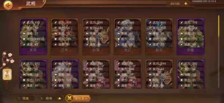 感谢某位楼主分享,卡了bug……没有抽多少太累了,总结如下:每个号都有固定抽卡频率(因为卡不过会回档)可以快乐一下,退游就回档了。其次可以看一下属性,下面图片都没有装备,不过都进行了培养,可以观察各自属性。大爱辽神,不过其他五虎上将与五子良将为什么不是橙色,关羽也很厉害的。