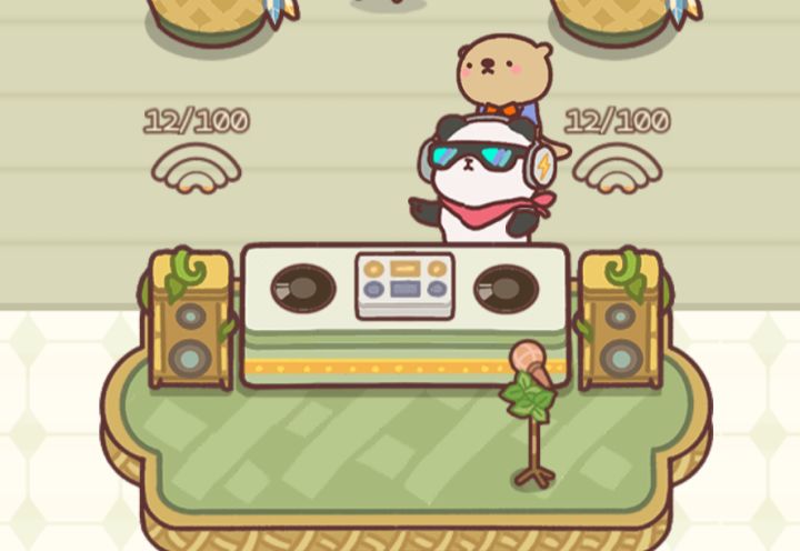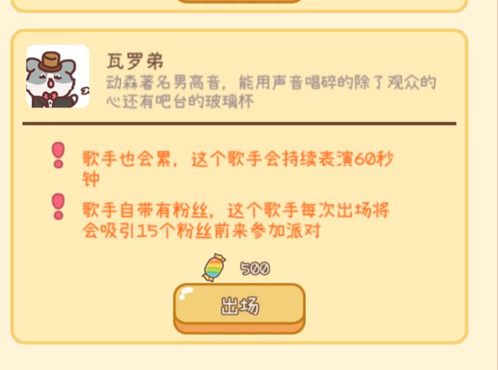 1. 点击水吧服务员/DJ(图一中的小动物),滑到底部,开花费500彩虹糖的派对(图二)