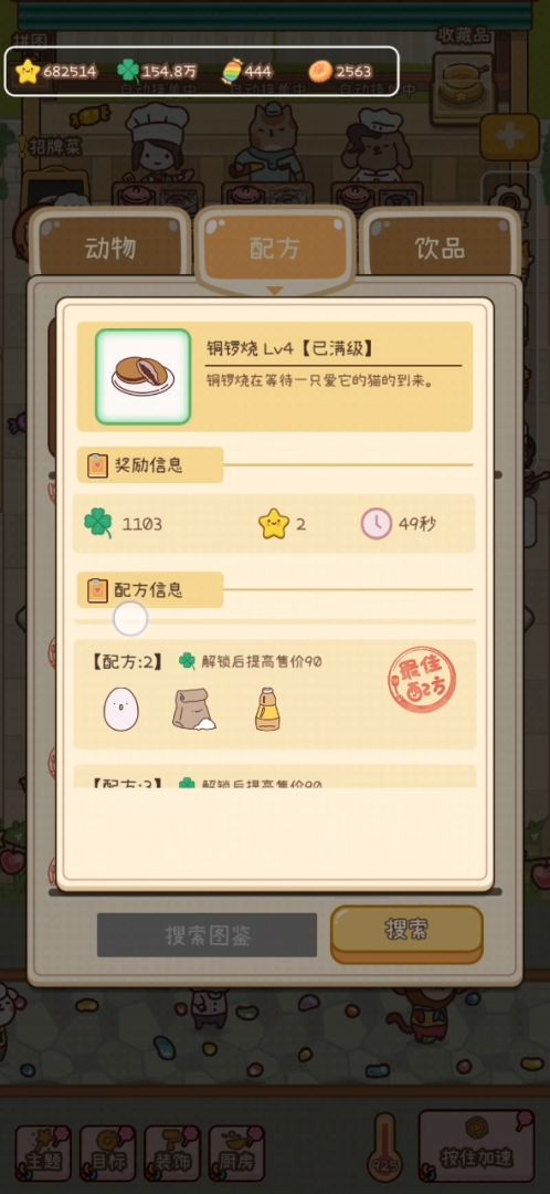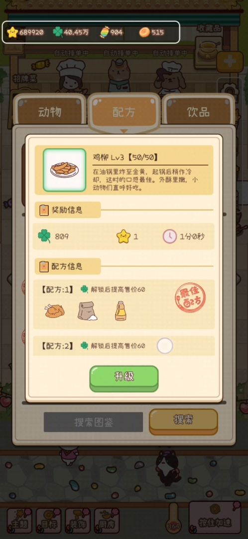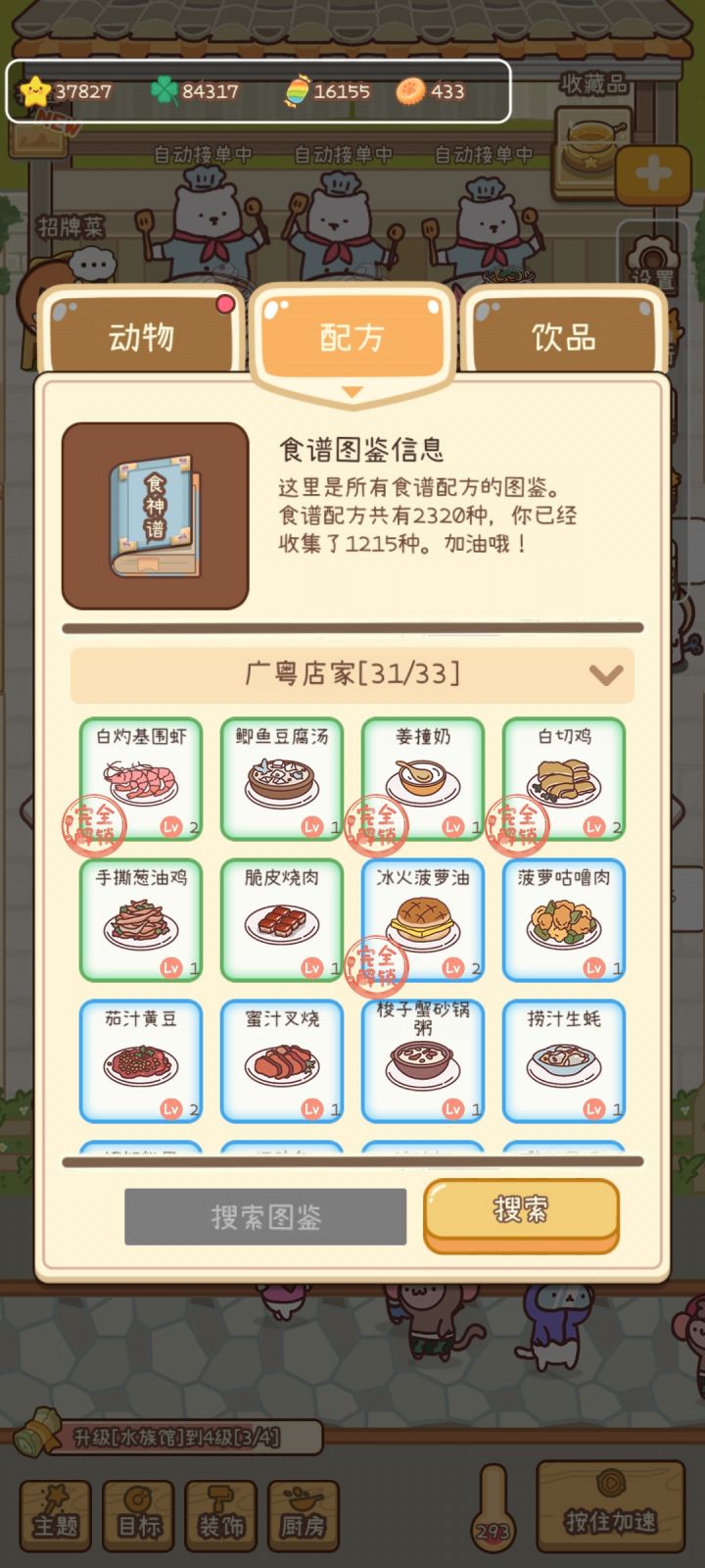 开个帖子,有没解锁的菜谱可以问我,知道的都告诉你。目前水族馆三级,其余四级,等级不高,菜谱收集的也不多,努力解锁中。另:白天有工作,做不到秒回。
