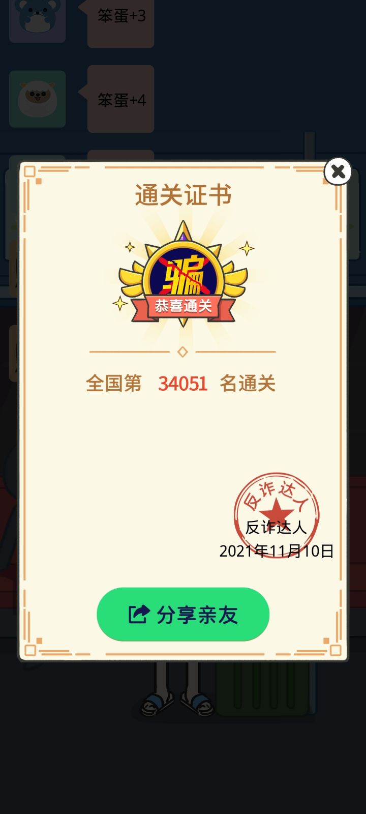 不错不错,通关了,还挺好玩,玩游戏的同时还学到了反诈知识,就是关卡太少了,不够玩。