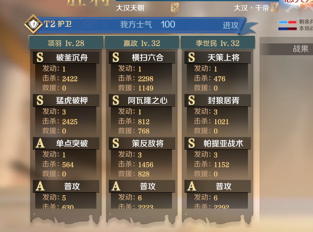 首先我觉得这游戏还是可玩的。然后我想将一下北定中原这个技能的问题,按照说明他应该吃到嘲讽,但是实际上刘邦带上他以后,北定中原就不吃嘲讽了。我认为这是存在bug的,因为只有大风起兮这个技能是免疫嘲讽,而不是刘邦这个角色。
