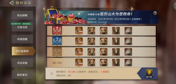 氪金大佬排行榜,还有那个将魂馈赠。就目前来说我T3兵装才一套,这活动就已经开始奖励全T4了。