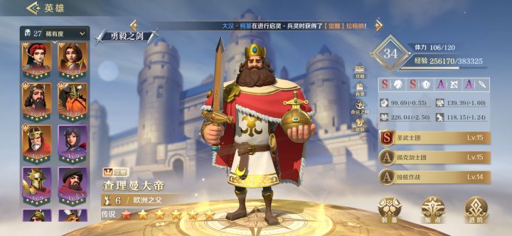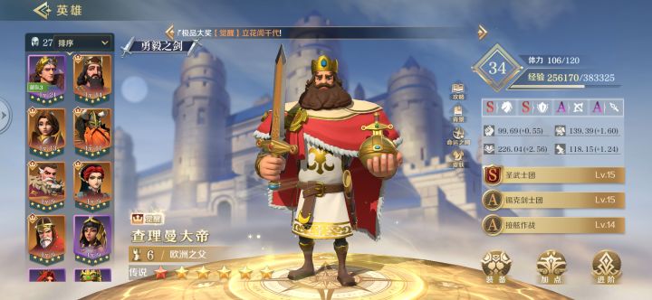 出一百万战力号,只充了6元,全平民阵容,7s技能,主城13级,任务13章,钻石四五百,7个将牌,已抽到的英雄全20级(凯撒好像不是,也快20了)
