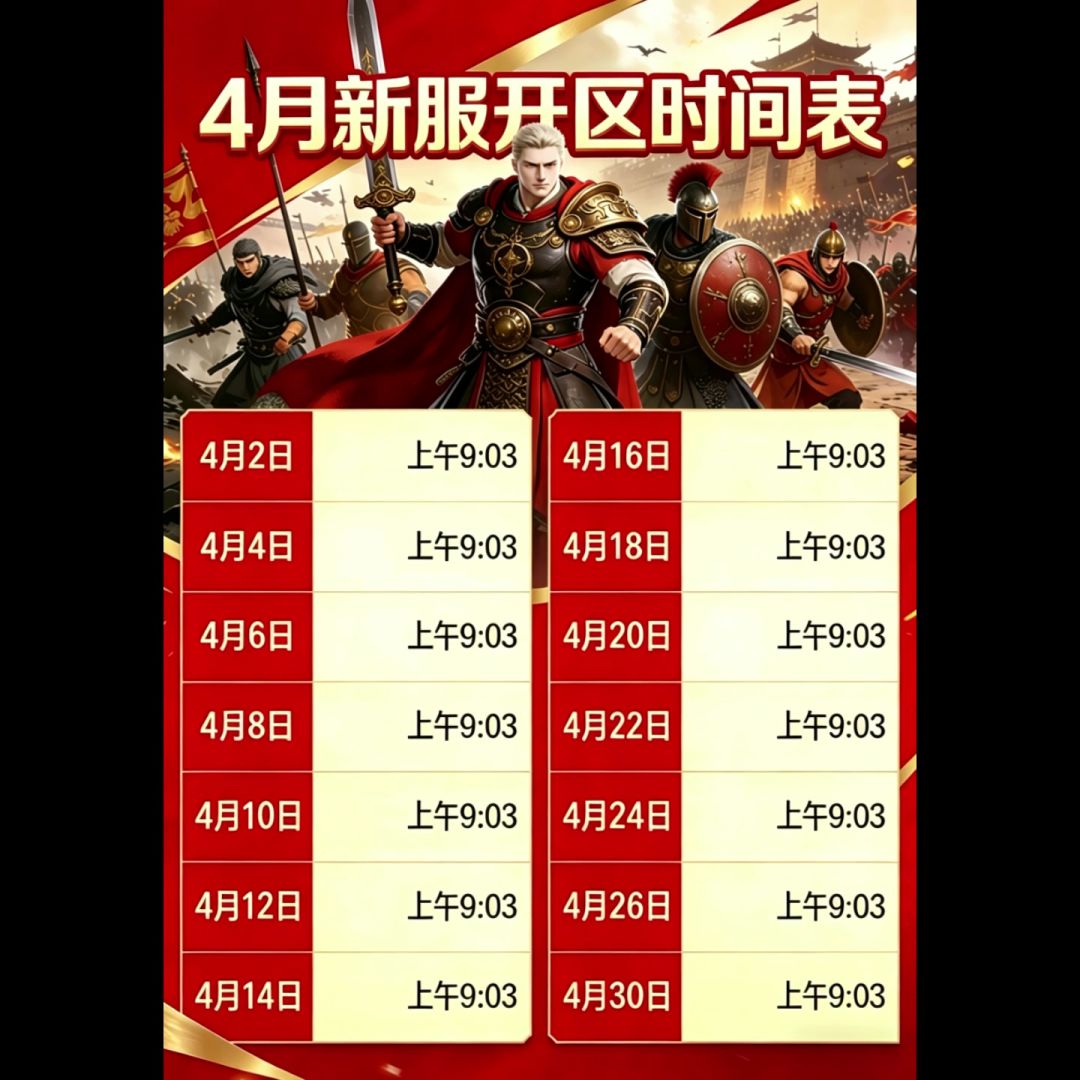 4月份新区开服时间查询表。