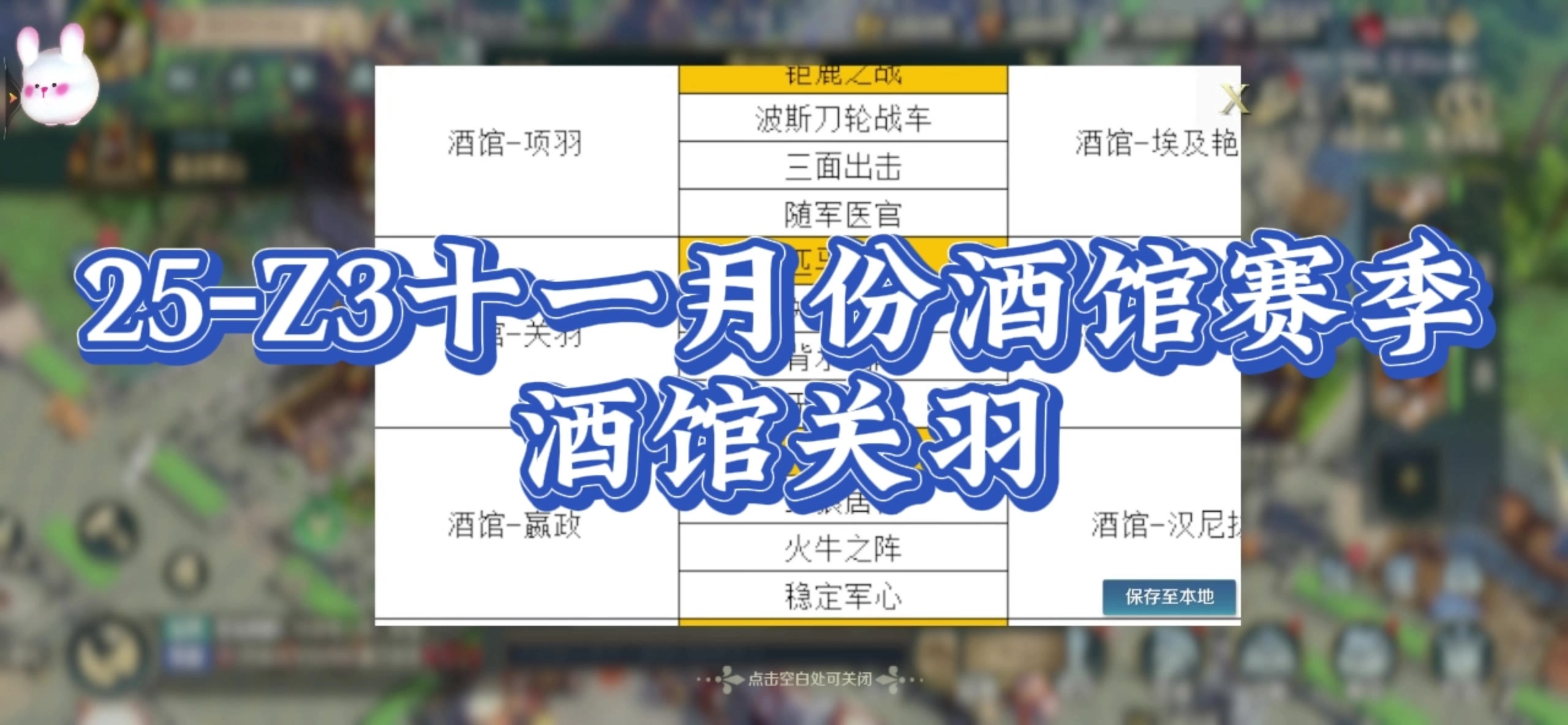 2025年Z3十一月酒馆赛季,酒馆关羽配将分享。