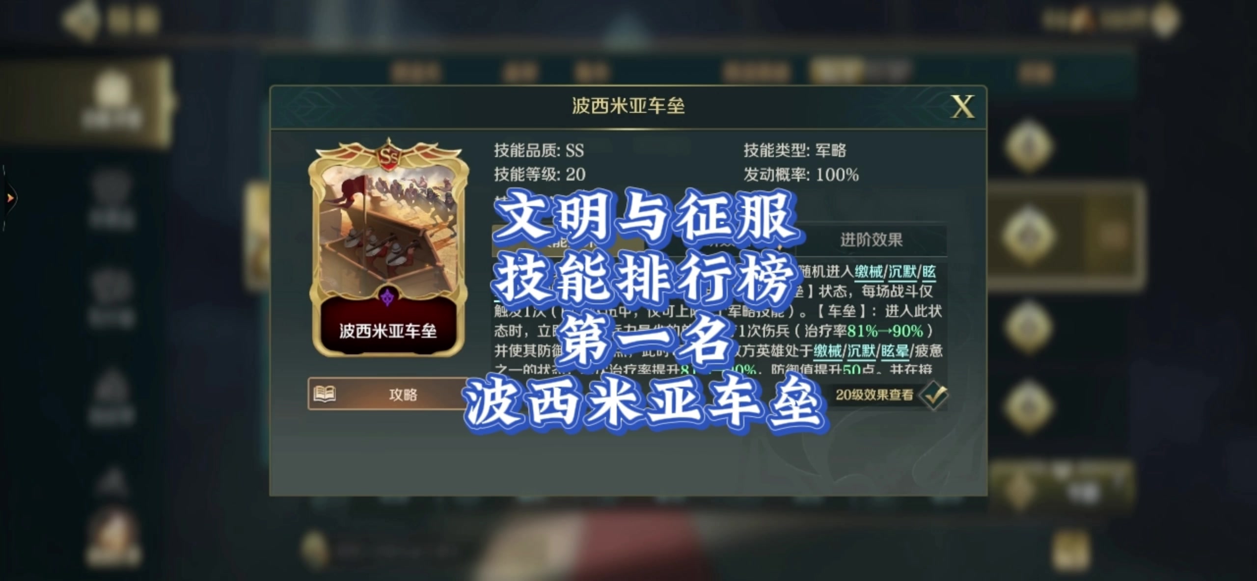 技能排行榜第一名,波西米亚车垒。#文明与征服庄子配将