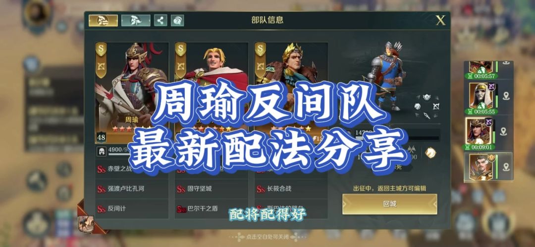 周瑜反间队,配长筱合战这种玩法,凯撒要抢占先手,卡敏捷147.5的。大家不要忘记。#新游攻略先锋企划#文明与征服庄子配将