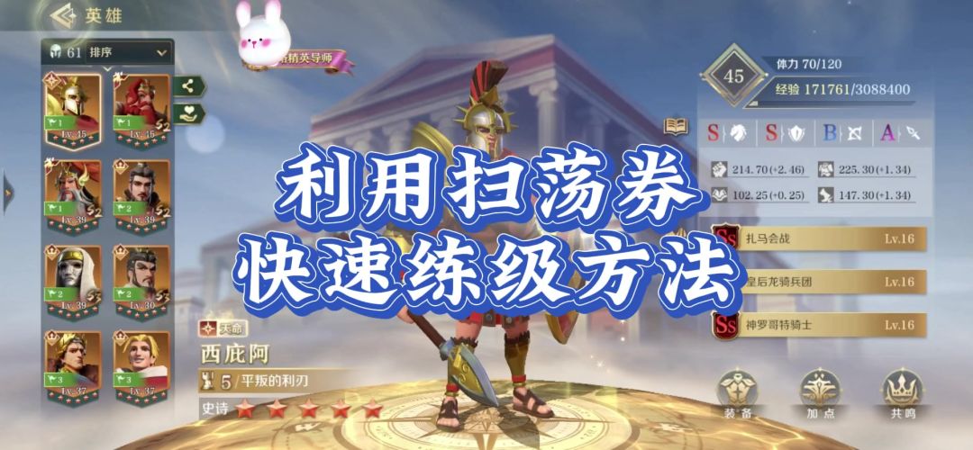 利用好扫荡卷,用俩满级的拉一个等级低的,这样练级很快。#文明与征服庄子配将