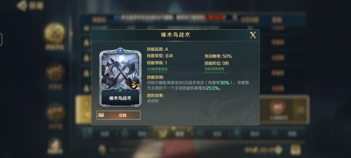 #文明共创第四季#大家好,我是战略学院季沧海,本期来讲解讲解,s2非常好用的a技能。啄木鸟战术作为为数不多的为主将增伤并且不需要前提的好技能,适配的地方也非常的广。区别于战王,战王是跳过准备阶段,这也是战王t0的优势但是,a级的技能有容易获得的优点,啄木鸟战术可以适配,大象关羽,普通关羽,乃至于三皇队,主将北条队。最重要的是,啄木鸟不需要任何前提,也不用恐慌,和灼烧,这就领先很多技能了。
