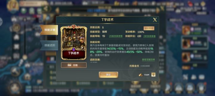 说实话,刚开始玛丽不是这样带的,带的技能是阿金,拜占庭。但是后面打肉突给我一个大大的教训,没有禁疗。因为我这套阵容没有孙武,孙子兵法。所以没有打过肉突,回复太离谱了。羽蛇神老技能了,禁疗,点火,降输出。t字战术我方3个准备技能发动成功增加回复比例50%,同时发动概率增加20%,加上这几个技能,关羽可以说是暴动机器,一刀一个小朋友。