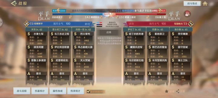 可以明显的发现,关羽水淹七军的发动很稳定,同时,这个队有伤害,有回复就是怕禁疗,加上孙武技能回复更离谱,但是这一套技能十分难搞,孙子兵法,大池子,和战王一个抽卡难度。所以战魂关羽的准备队对于平民,非酋十分不友好,在没有足够技能条件下,不建议玩战魂关羽。同时,本队伍技能应以正式服为准,测试服技能可能会有改动。太强出不来的。好了,本期介绍到此结束,感谢您的阅读,如有意见或想法可以在下方留言,作者一一回复。我们下期再见!