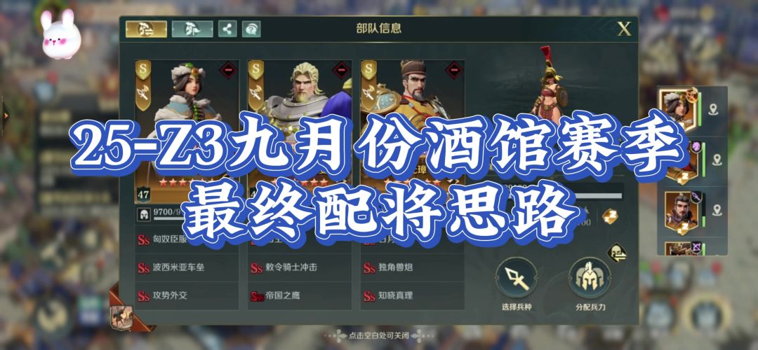 25年Z3九月份酒馆赛季,最终配将思路!#文明与征服庄子配将
