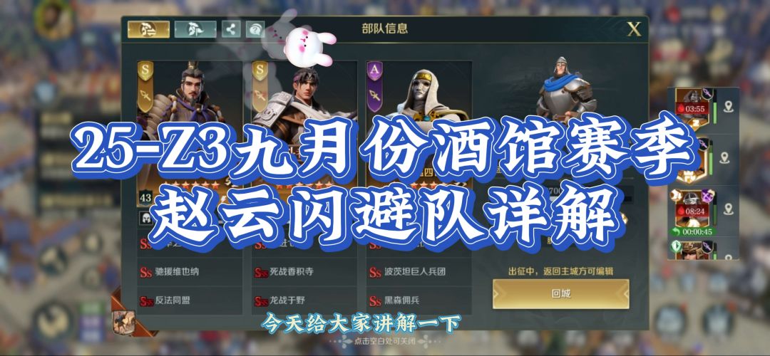 25年Z3九月酒馆赛季,赵云闪避队,配将详解。#文明与征服庄子配将
