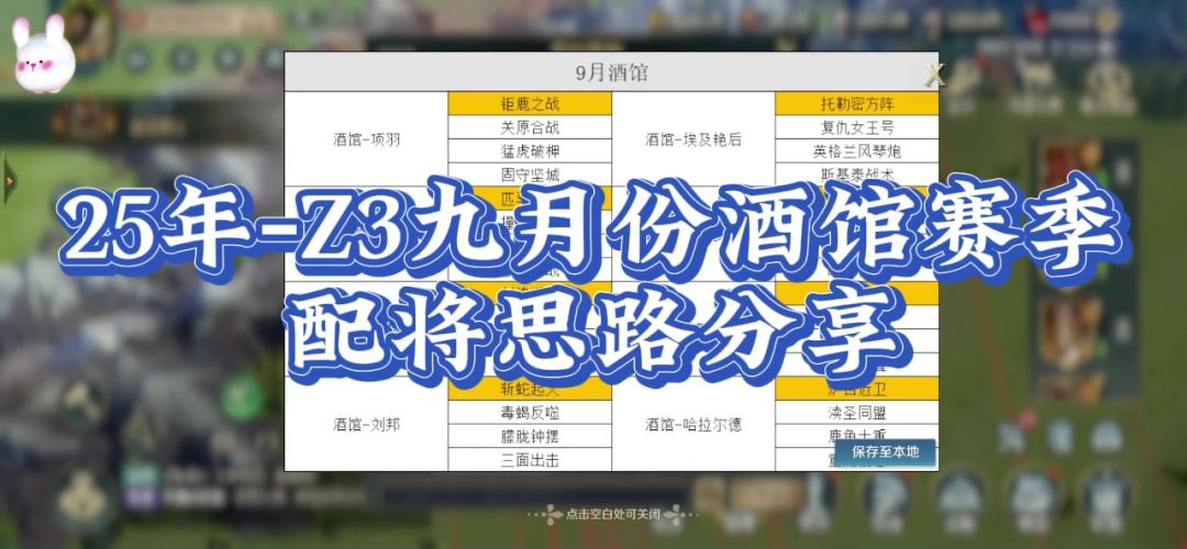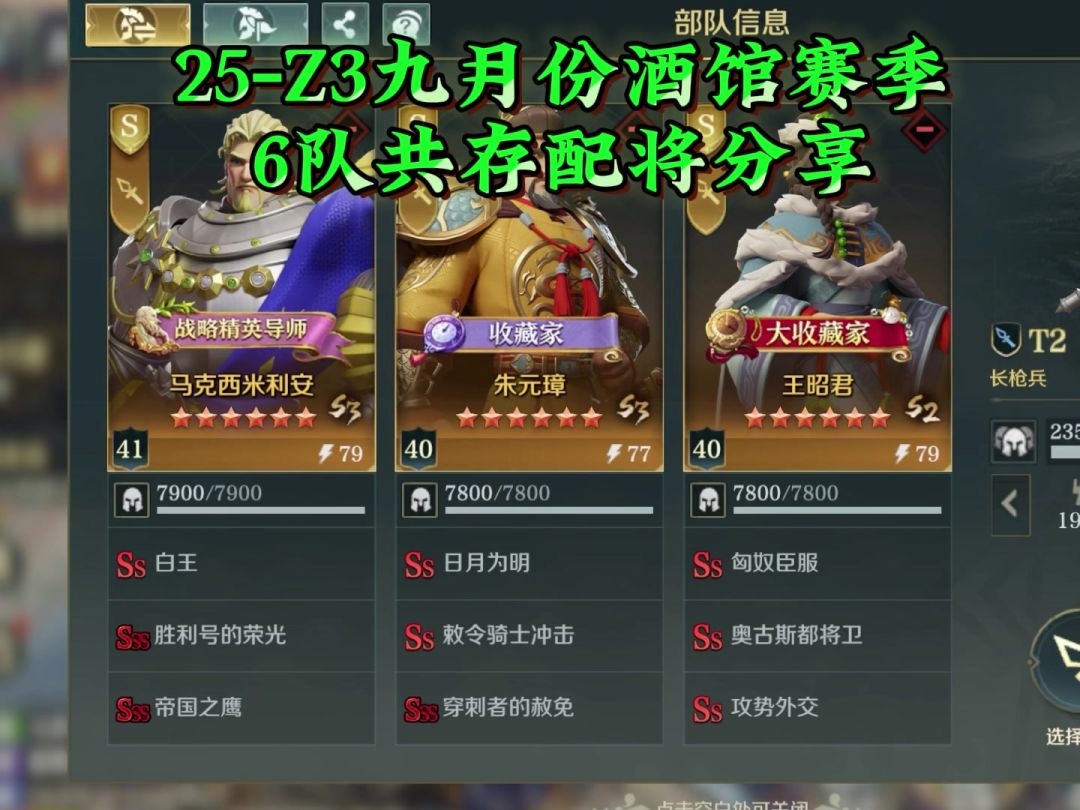 2025年,Z3九月份酒馆赛季,配将思路,赶紧收藏保存,过几天就要用了。#文明与征服庄子配将