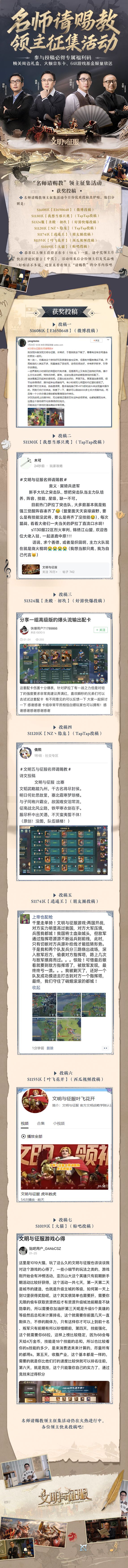 “名师请赐教”领主征集活动进行中参与投稿必得专属福利礼包码更有精美周边礼盒、大额京东卡648游戏基金等限量大放送分享投稿内容至任意社媒平台复制链接+截图保存后并填入问卷即有机会赢取豪礼!赶快戳下方链接参与投稿吧: