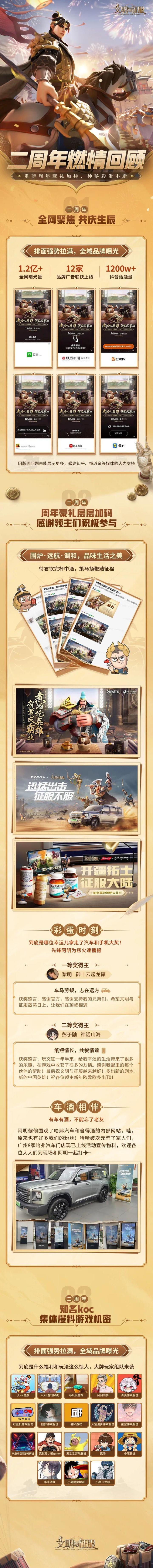 新的一年越来越好~二周年活动即将落下帷幕领主大大们是否还意犹未尽让我们继续在文征战场共续新年 福利满满、福气多多的二周年庆典已落下帷幕短短十五天感谢领主大大的盛情参与和积极响应也感谢各家媒体和品牌合作伙伴的鼎力支持领主大大的心声小媚会牢记2024年一起加油让我们一起回顾二周年庆的燃情时刻↓↓↓ 二周年庆典虽已落幕《文明与征服》之路还在继续让