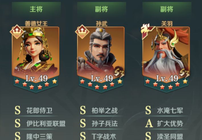 S3强势阵容准备流文明与征服已经半周年了,这里祝越来越好。半周年哪个英雄陪伴你们最长呢,我的文明里关羽是我玩的最长英雄,从S1玩到S3。S1关羽年轻壮志主将位置少不了,S3头发苍白但依然老当益壮。本期分享阵容关羽担任副将位置,不过关羽依然是我心里的C位。上面说的老关羽正是战魂关羽,与孙武善德女王组成准备流阵容。阵容:孙武: 孙子兵法 T字战术战魂关羽:扩大优势 渎圣同盟善德女王:伊比利