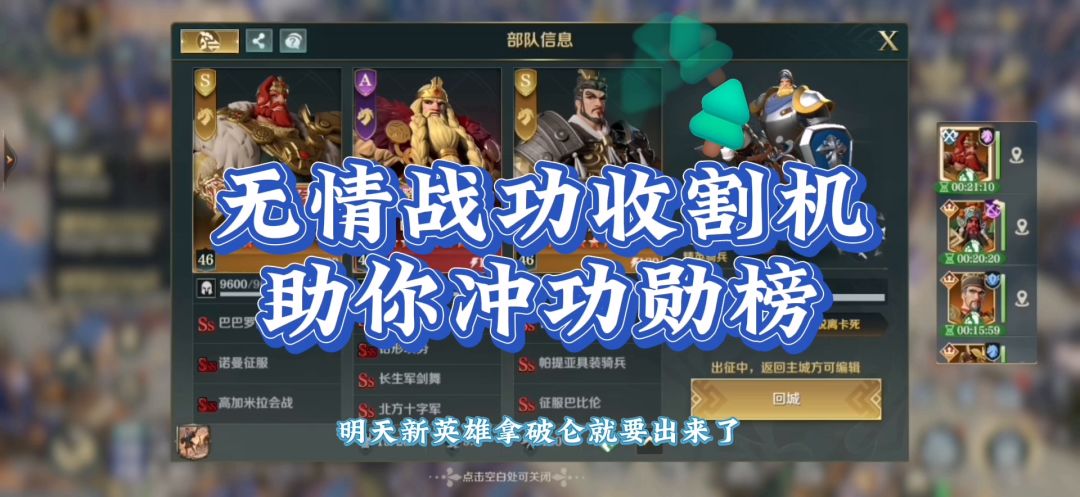 文明与征服S10赛季,加点:白起加防御。庄子知道您明天要冲功勋榜,帮您配好了一队战功收割机 ,点赞,收藏,抄作业。#文明与征服手游#文明与征服阵容搭配#文明与征服开荒冲榜