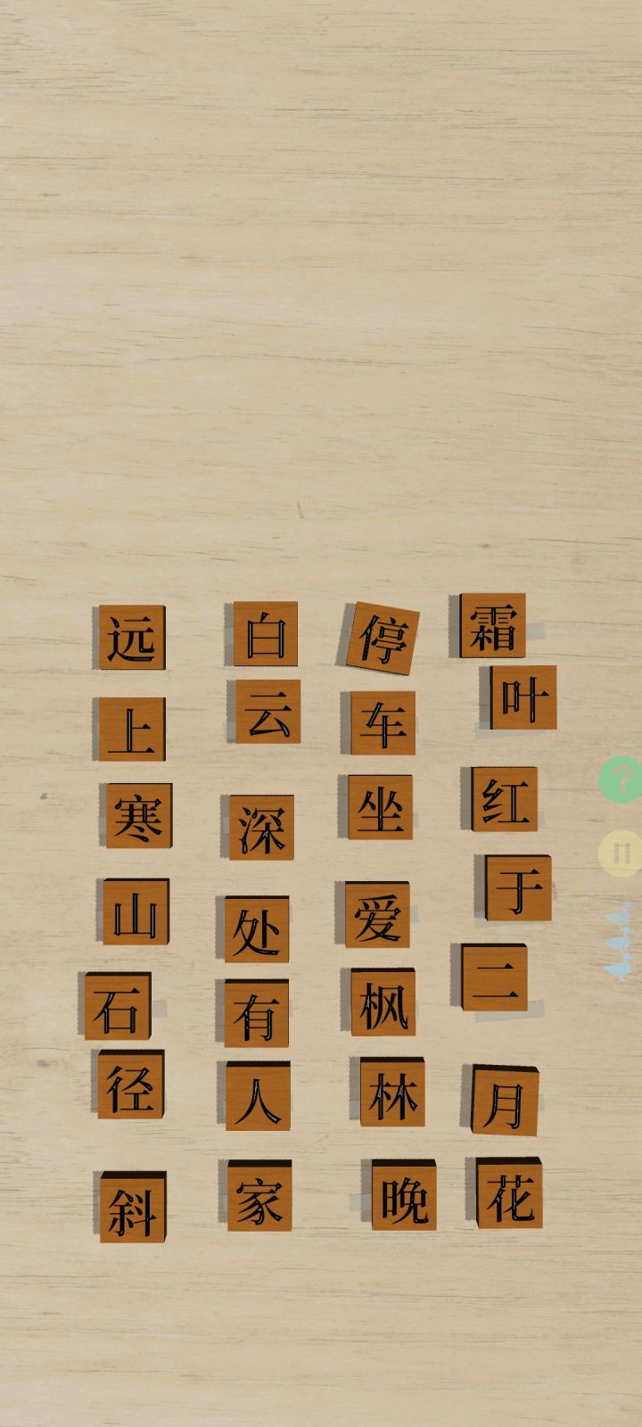 每次拼一半闪退,又重开下一首诗,😂就只拼了三首完整的,玩的有点憋屈