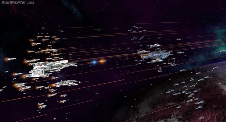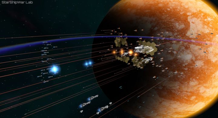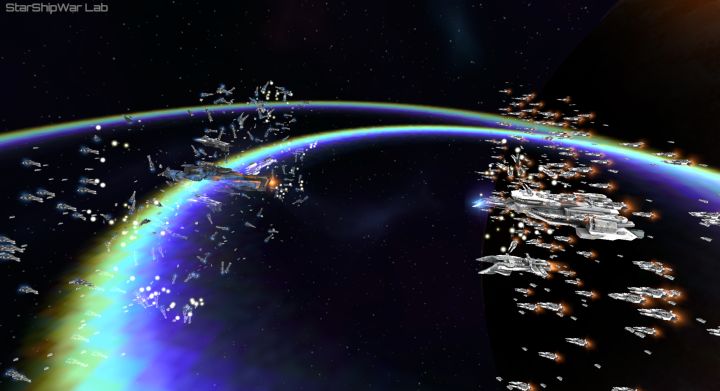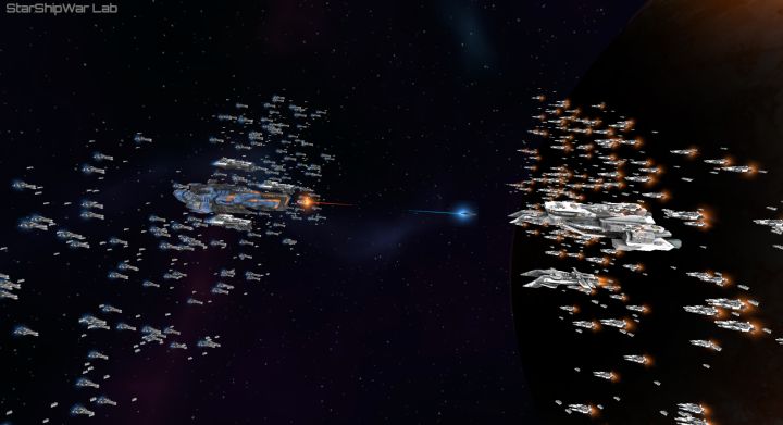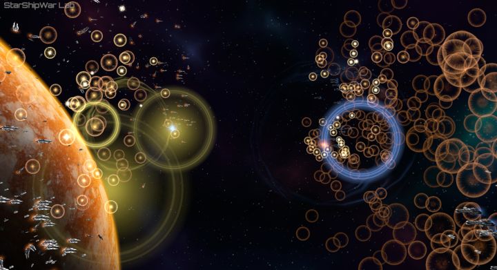 本来只是在尝试核弹对射,但意外发现了个小bug。在核弹爆炸中央位置附近的一艘飞船没有被摧毁。😅