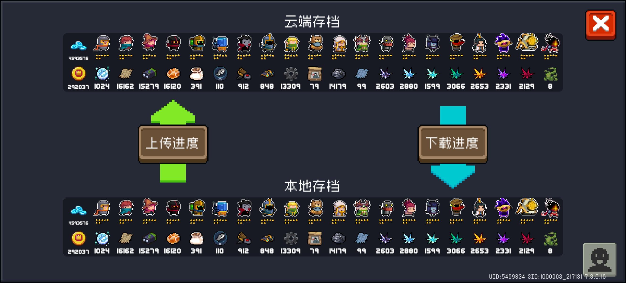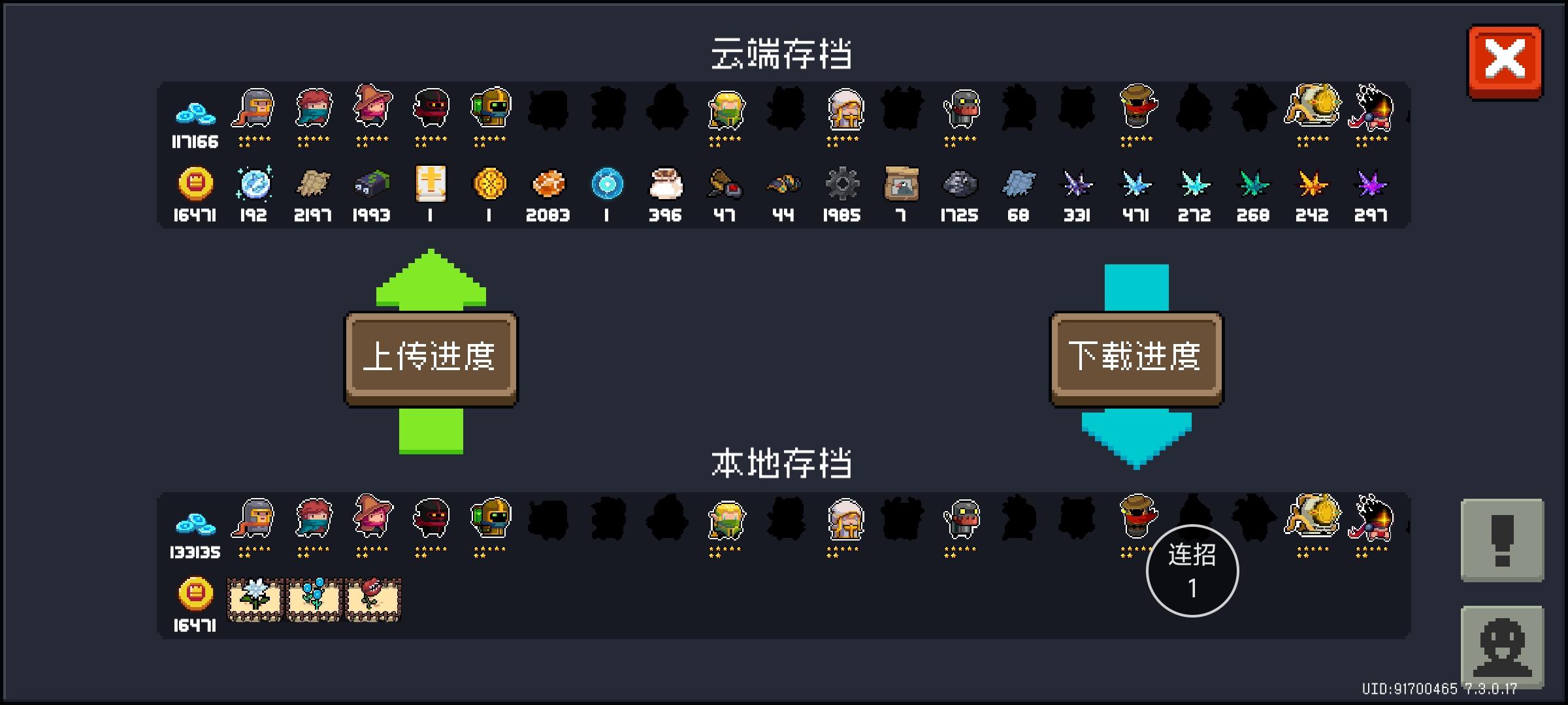 一直卡在这个界面。卡了几次重进后存档里就剩满级人物了,其他全都消失了。这几天肝了很多,也不敢直接下载云存档。怎么办#元气骑士