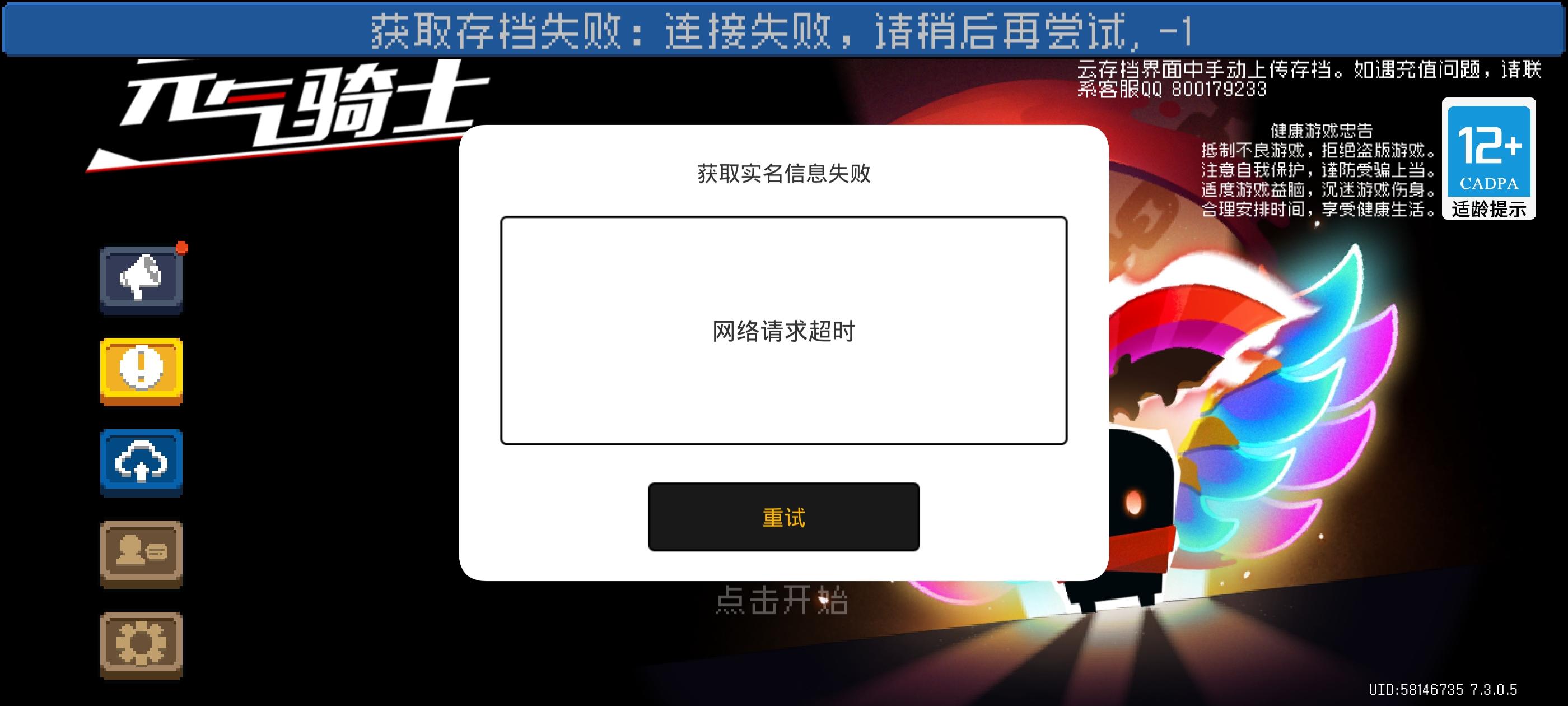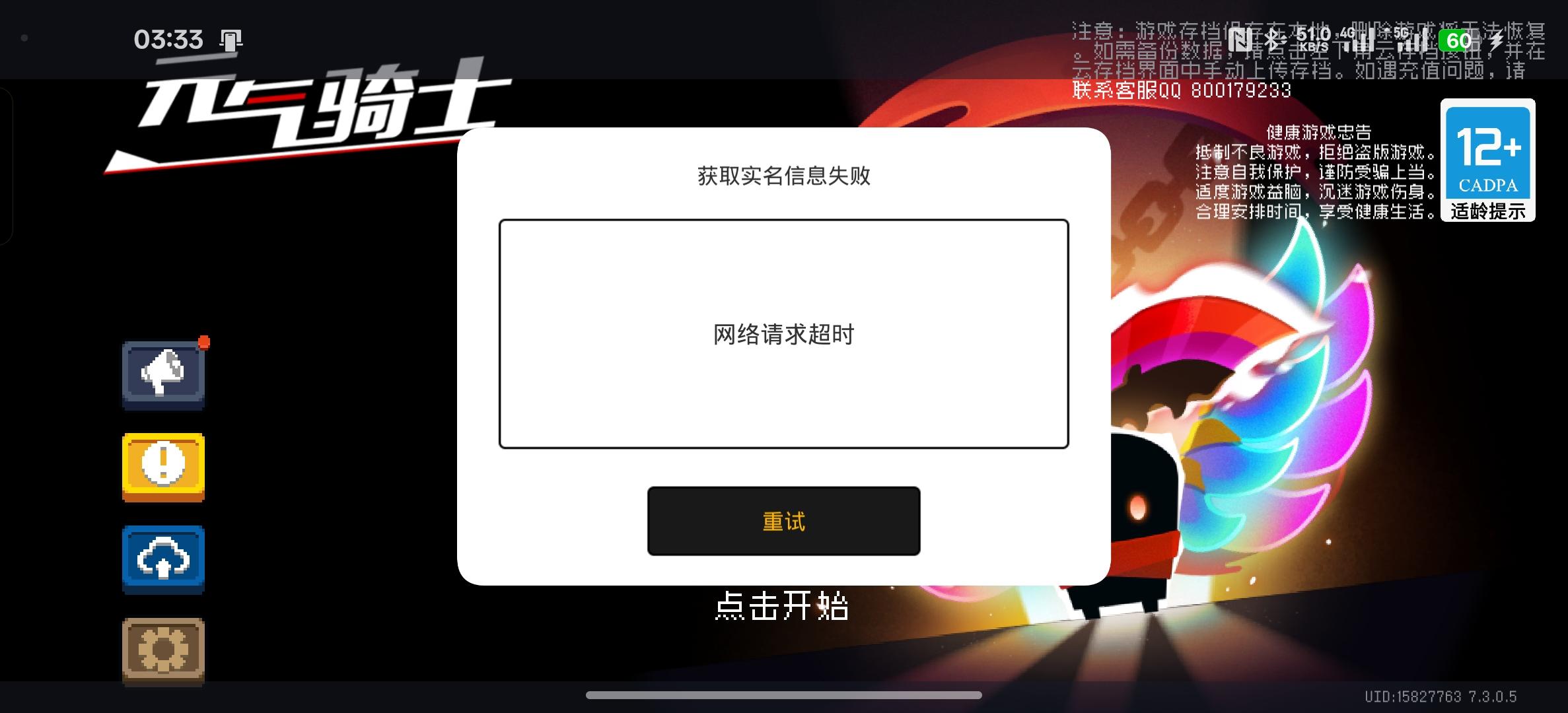 在加载时候网络连接等都是正常的,也可以正常登录,但是就是没有办法开始游戏,一直在获取实名信息一直在失败