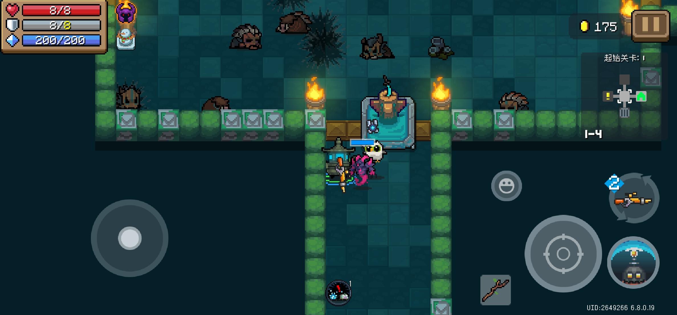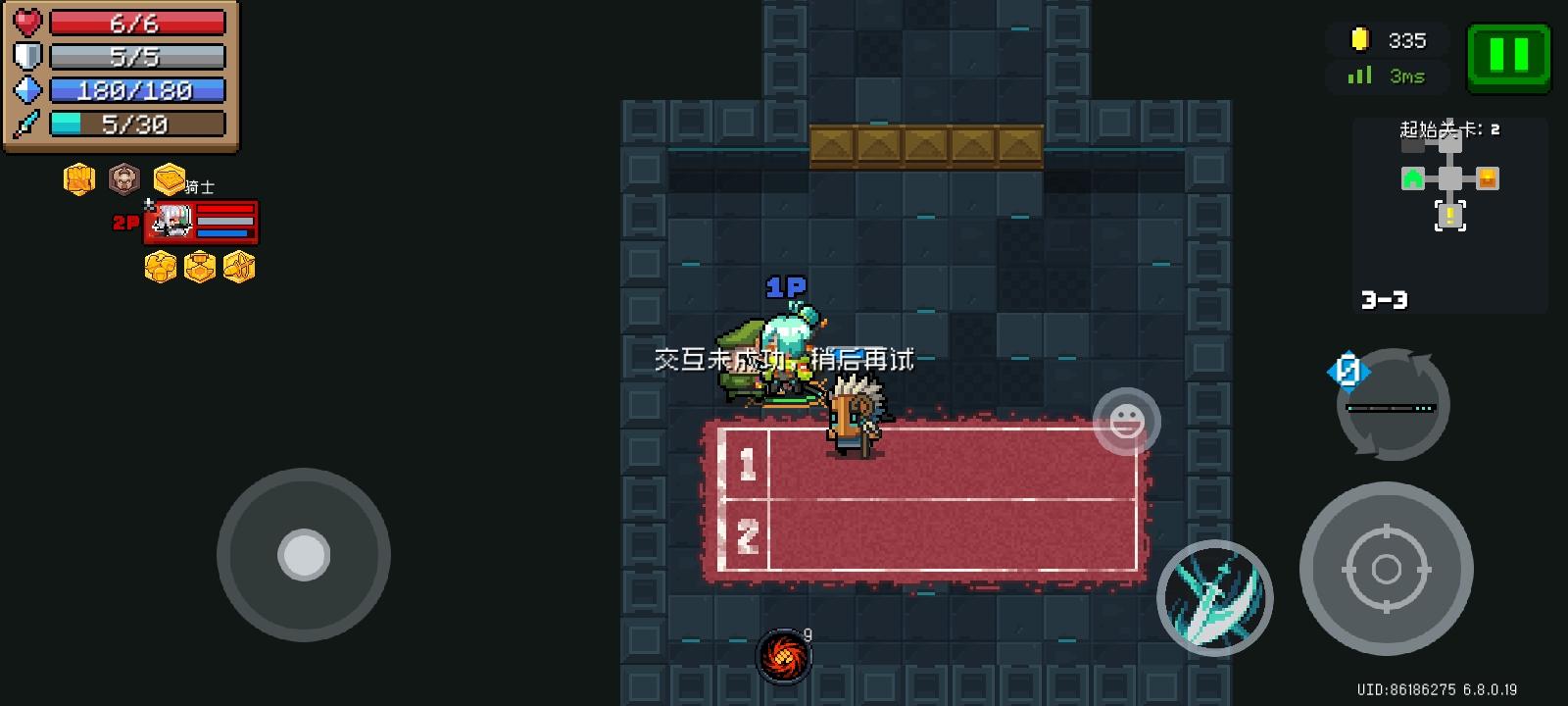 强化完武器后,没来及的捡起来,自动回收到仓库后,再领取出来,配件就丢失了;德鲁伊骑上🐻之后,会自动不断往上位移,最后角色超出了界面,只有下🐻之后,才能重新出现在屏幕中央;皮套王子,在狭窄地方变身,会被挤出地图,只有通过传送才能回到地图