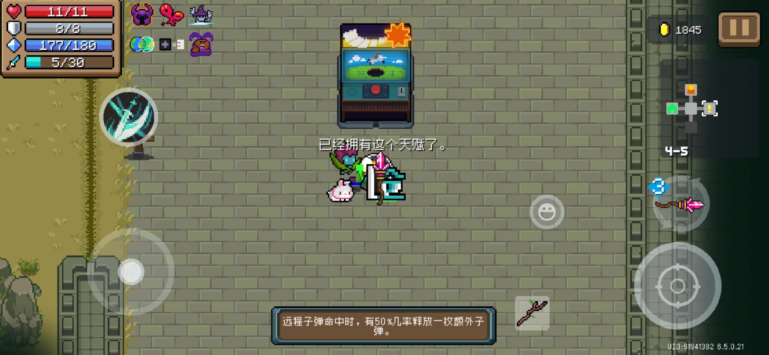 于特性满天飞模式:天赋大师中发现子弹分裂镜像对换,但不可购买,抽奖机天赋不可拾取。