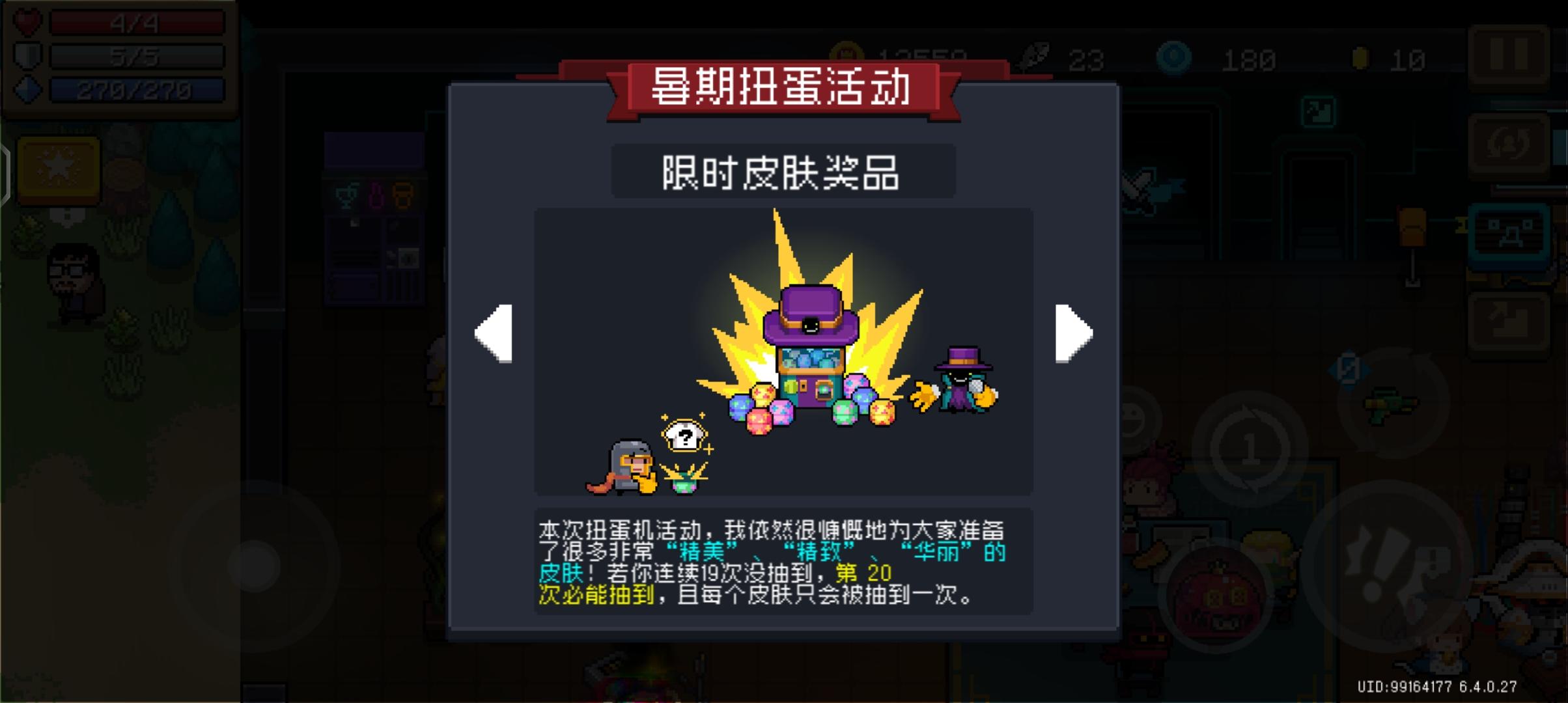 我只剩气宗的皮肤没有,已经好几天连着抽都抽不到气宗的皮肤了,今天再看了一遍原则,直接抽了20抽,已经显示剩60抽机会了,但是还是没有出气宗皮肤,希望官方能修复一下#元气骑士