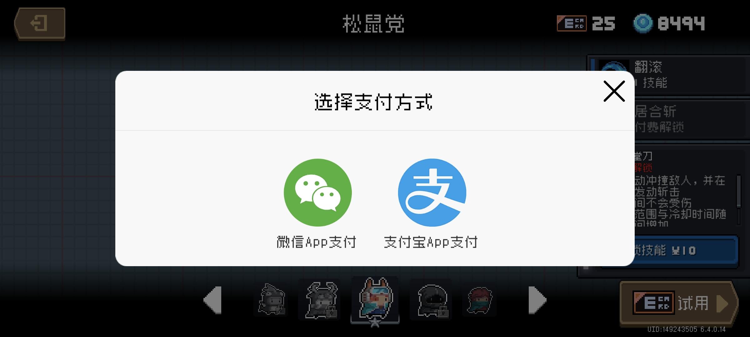 说一点支付方面的想帮我弟买个游侠技能,但是支付页面是点击微信支付后就跳转到微信,可是我弟手机没有微信,网页登陆很麻烦,下载微信后登陆也有点麻烦,不过最后还是买了官方能不能改进一下交易过程,比如可以通过要购买时出现两种选项:自己支付/他人代付自己支付就调转到微信,他人代付就弄个二维码,方便其他人扫码支付相必这样肯定可以方便我们玩家在游戏内的交易的#元气骑士