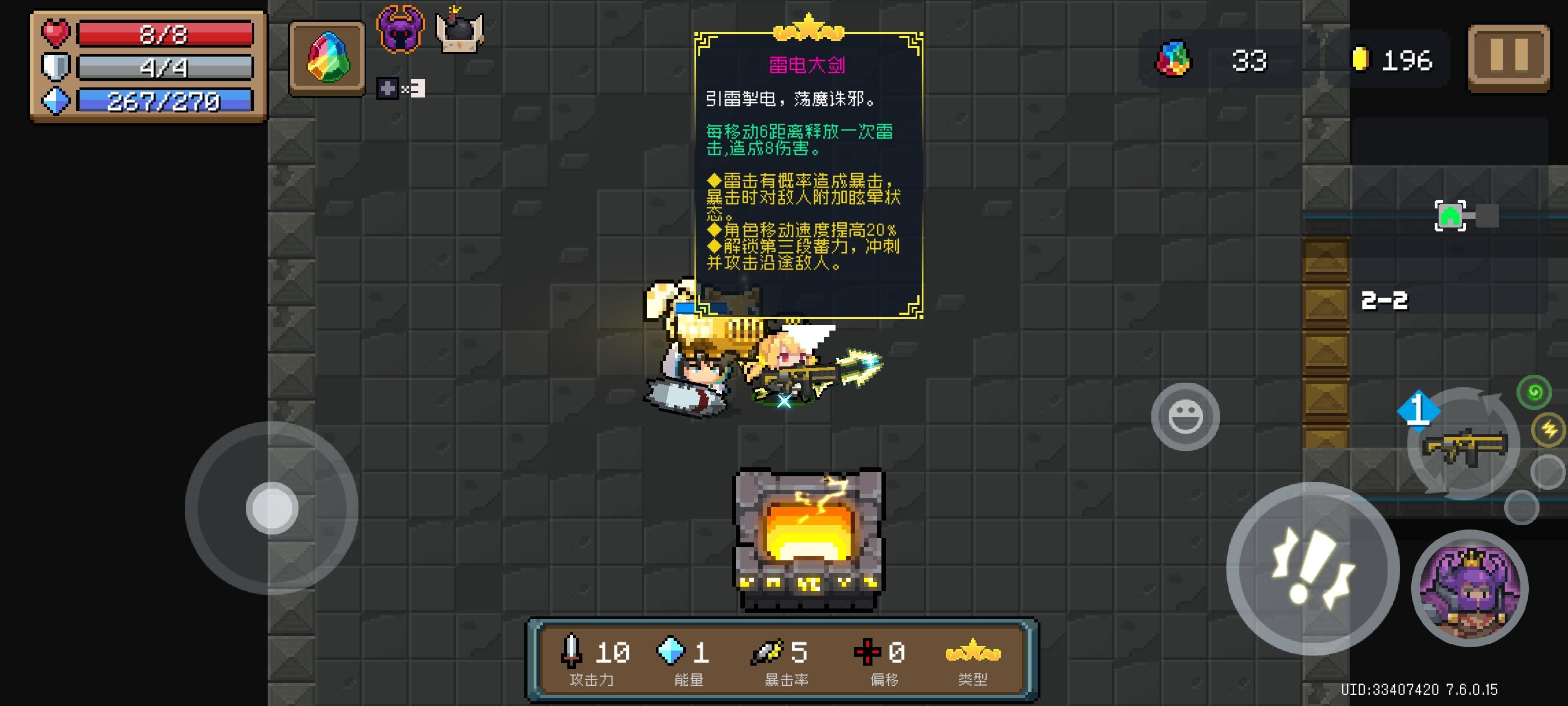 副手金刚窟,吸了那个冲锋枪。然后这关进来,我的#元气骑士 雷剑就掉地上怎么都捡不起来了还有,你这雷剑的手感差的批爆,经常按了不能蓄力。一大坨