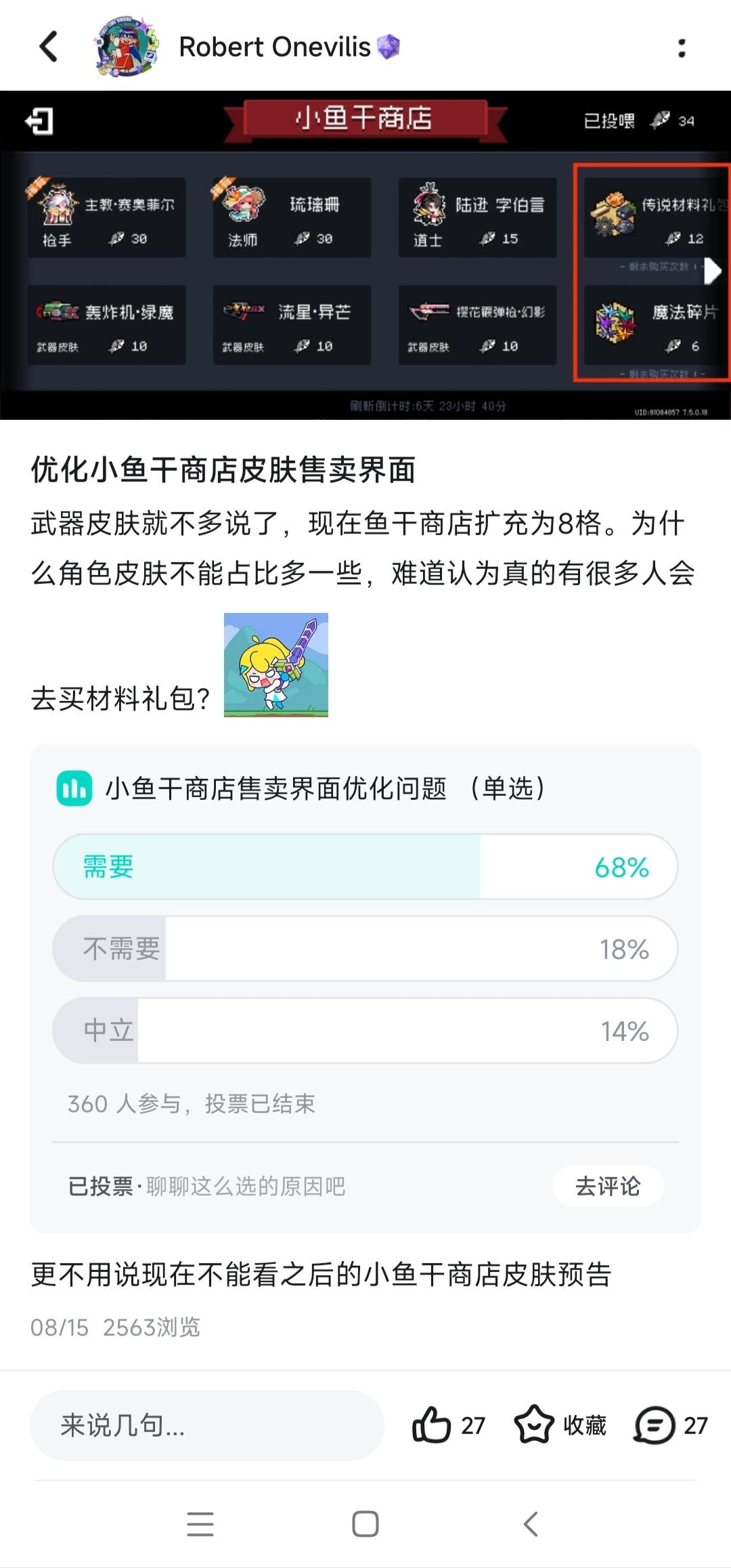 自从这个三体人改版之后食山代码一大堆,这次打个迷迭岛boss血都不带动的,这么多伤害早给他秒了,这个bug触发概率高的很,一造成卡顿十有八九就卡出来了这bug,这游戏体验一言难尽[表情_生气][表情_生气][表情_嫌弃][表情_嫌弃][表情_嫌弃]#bug反馈 #游戏日常 #元气骑士