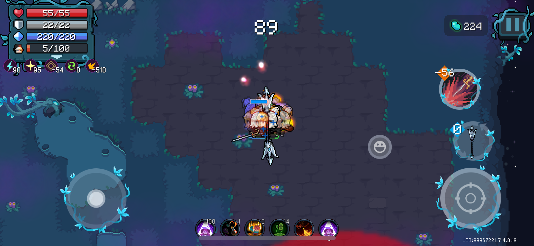 不确定是皮肤bug还是武器bug,但是试了一下闪电五连鞭,应该是痛苦面具的bug,可以随便穿墙,除了边墙#元气骑士