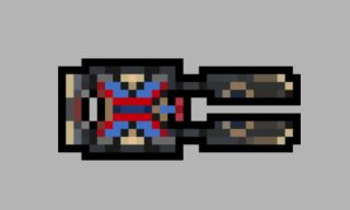 武器类型:火箭类武器外观:主色调为灰色,炮身有红色和蓝色的X形纹路,红色的炮口两侧有两片向前的延伸物,有淡金色点缀的重型机炮,发射被深紫色能量包裹的炮弹,处于开火前摇时炮口会发出紫光。机制描述:长按攻击键时进入0.8秒的开火前摇。前摇结束后进入攻击状态,以0.4秒每轮的速度攻击,攻击无偏移,每轮攻击蓝耗为3,发射4颗深紫色的椭圆形光球。光球飞行速度为55格每秒,每个光球击中敌人或障碍物时产生半