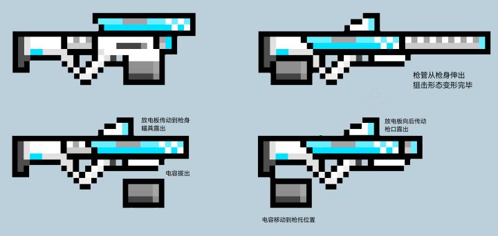 武器名称:破星者类型:激光武器(设定是电磁动能武器但特效不允许她是狙击枪)机制:蓄能条单点常规射击:伤害10蓝耗4暴击25%射击间隔为1秒当破星者在骑士手中时角色头顶会出现一条蓄能条(参考猎人弓)长按攻击键会进行蓄能蓄能分4级每蓄一级需要1秒并增加10点伤害和15%暴击值武器进化增加武器技能:点击技能键可发动一次nb的射击(拥有nb的特效且可以穿透地图)伤害150无暴击,使用技能后枪